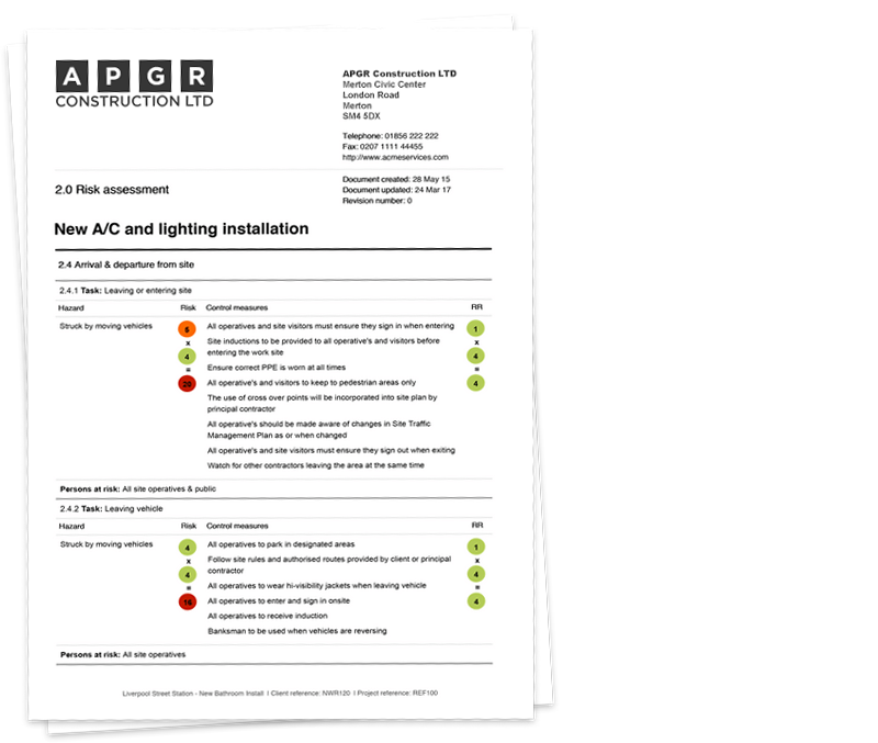 Write a risk assessment and method statement
